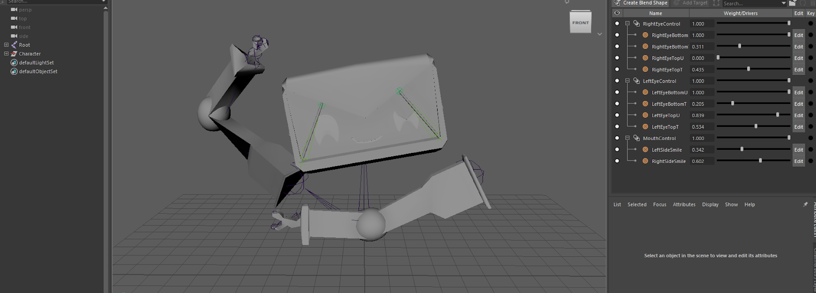 While I was working on the base model while getting caught up in how I wanted to do the face I got distracted with the expressiveness and how to give my character that and myself the ability to animate it, that is when I discovered 'blend shapes'. Blend shapes save a default pose and another pose that you can have the object that has been converted into a blend shape gradually shift into using a slider, such as being able to make eyes on a model go from '|-|' to 'T-T'. I will be using this alongside to make my character highly expressive alongside using the posing of the arms (once I've made them).
